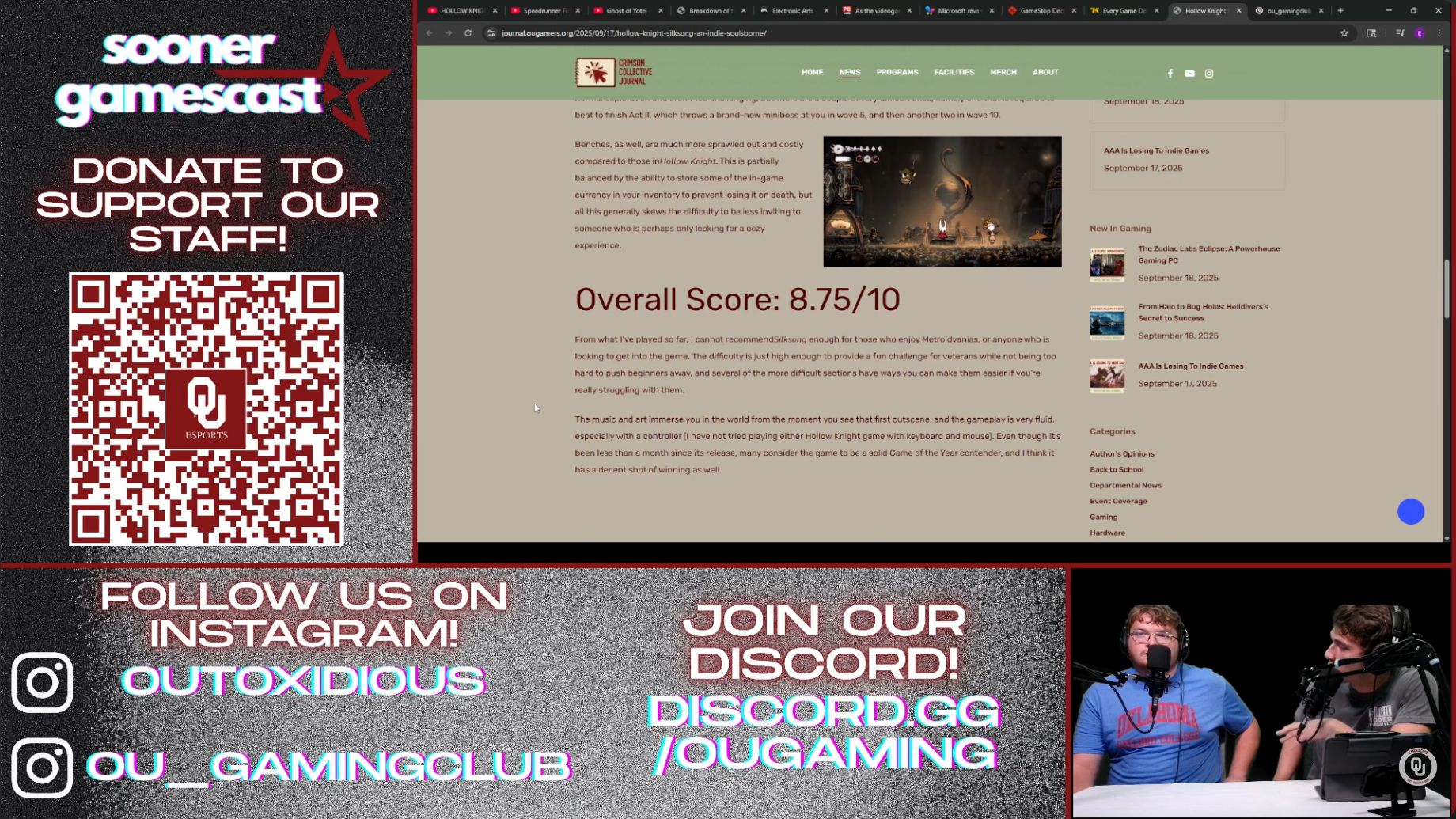 Watson and Faggion have recently started this effort, with the October 3rd podcast featuring a handful of CCJ articles. They analyzed News Writer Nora Reese’s Hollow Knight: Silksongreview and provided insightful commentary about it.